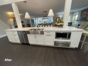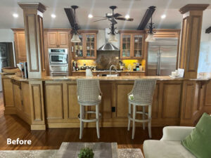 For this kitchen remodeling project, our homeowners were looking to not only update their cabinets, they also wanted to change the look of their island. The existing one was two-tiered, and they wanted to make it one level. The majority of the cabinets we were able to reface while the island was done with new cabinetry.