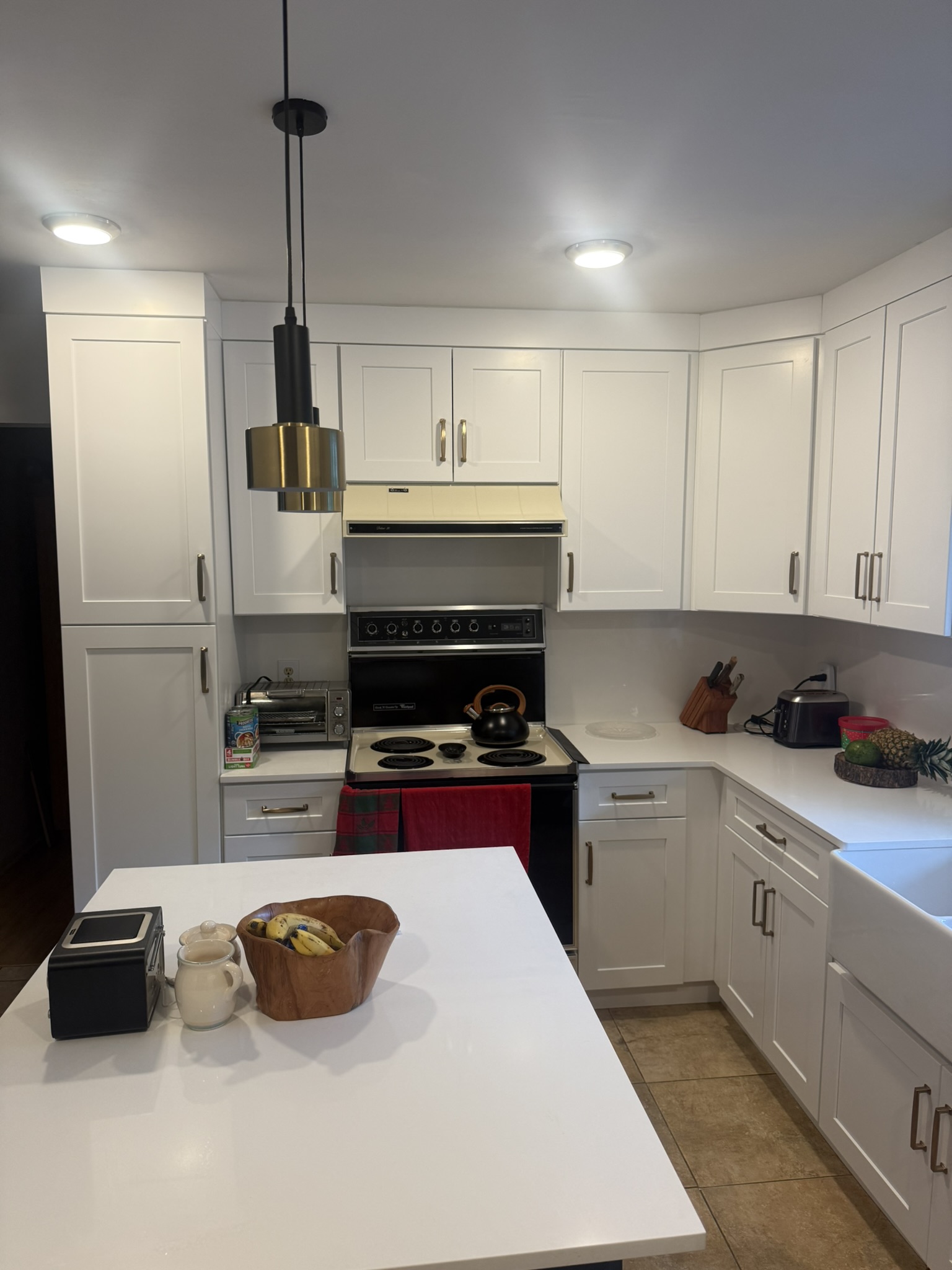 • Color: White for cabinets and Navy SuperMatte for Island and coffee station